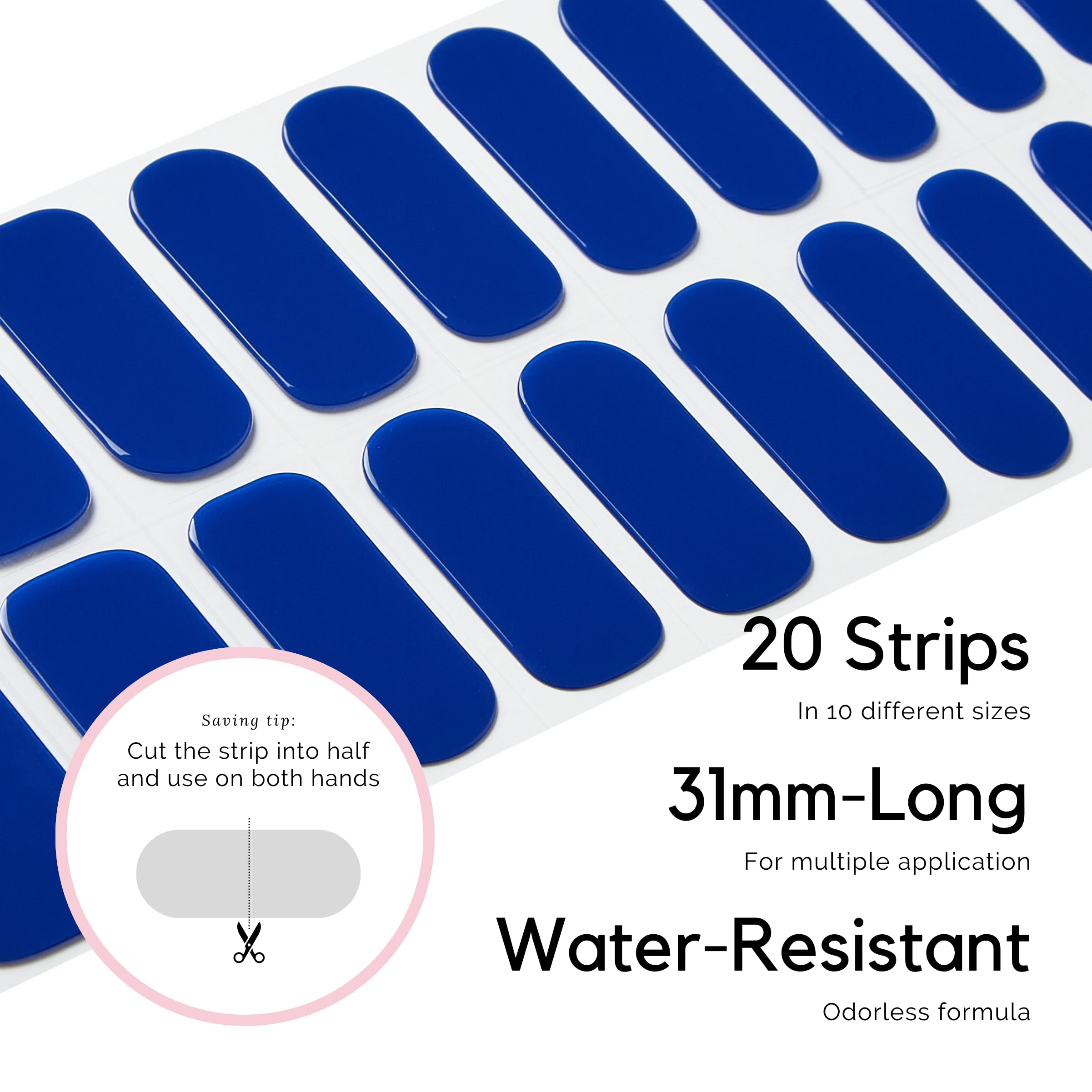 Solid color gel nail strips are longer and wider than other semi cured nail stickers. Designed to fit all nails. - One peice nail strip can be cut in half for two nails if your nails are short.